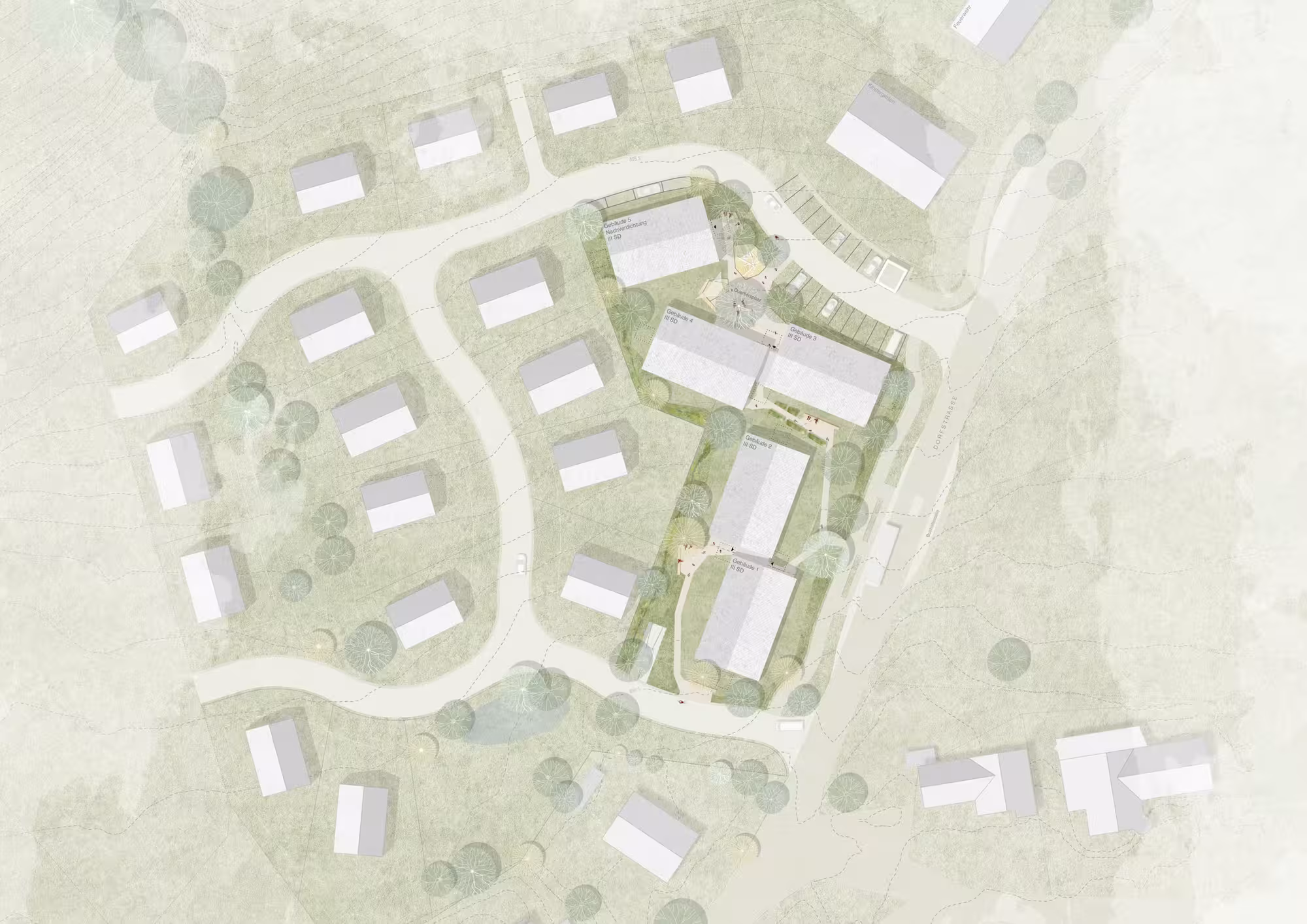 Yonder Architekten haben an landschaftlich exponierter Stelle im Allgäu südlich von Kempten eine angemessene Architektursprache sowie eine städtebaulich überzeugende Konfiguration in kostengünstiger Bauweise gefunden – und das trotz einer relativ hohen Anzahl geforderter Wohnungen, die zudem über eine Tiefgarage verfügen. Die These von Dieter Kienast, dass sich der Freiraum stets aus Städtebau und Architektur definiert, findet hier eine eindrucksvolle Bestätigung. Letztlich ist es für Landschaftsarchitekten immer einfacher, eine stimmige Gestaltung zu entwickeln, wenn Raumzuschnitte und Proportionen überzeugen.