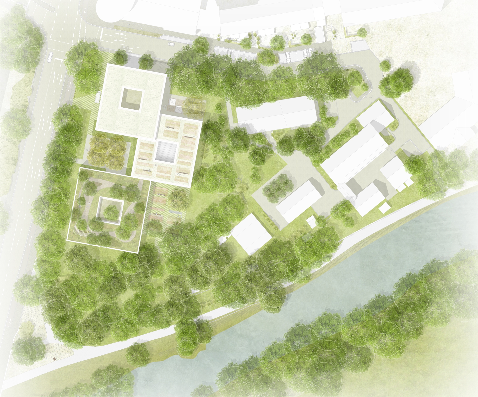 Direkt an der Pegnitz entsteht auf einem bislang als Gartenland genutzten Grundstück ein Pflegeheim mit Seniorenwohnungen. Gemeinsam mit Köppen Rumetsch Architekten respektierten wir den wertvollen Baumbestand und bauten um ihn herum. Die Konkurrenz ging deutlich sorgloser damit um.
